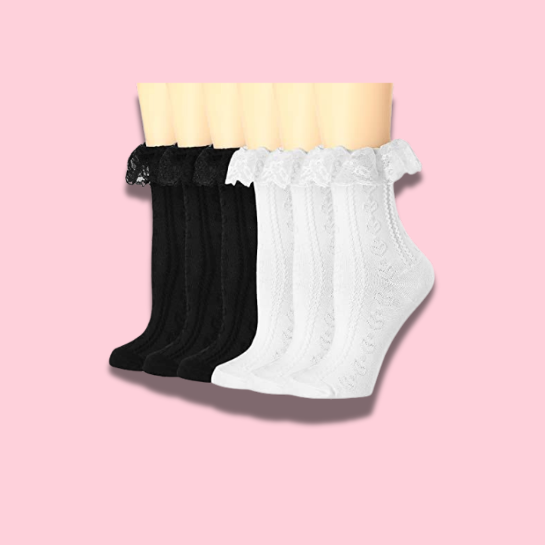 Lace Ruffle Frilly Cotton Crew Socks - Frilly socks for women are made of high-quality cotton and lace, the fabric is soft and breathable. There is no extra fabric at the smooth toe seams of these ruffle socks so it’s comfortable to wear.