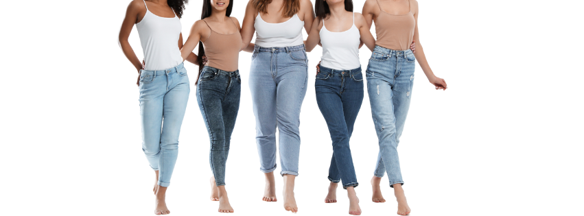 • Denim: Go for a flattering pair of jeans in a classic wash, whether high-waisted, straight-leg, or a wide-leg cut that works with your body shape.