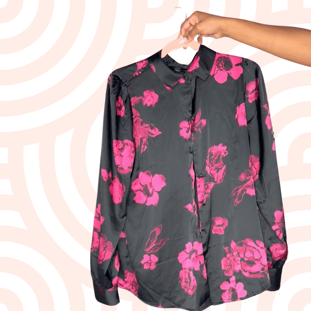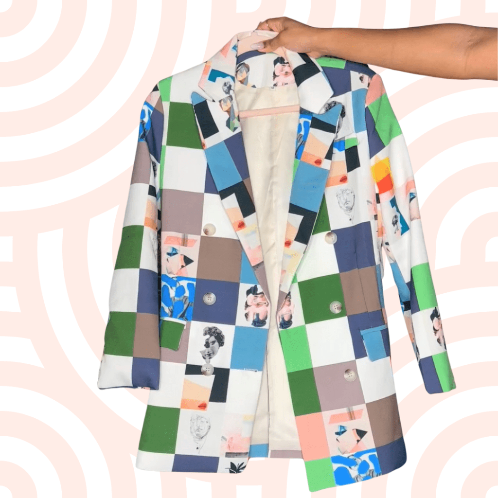 This formula balances the vibrancy of the top with the sleekness of the tailored pants. The structured blazer adds sophistication, while the earrings make the outfit pop.