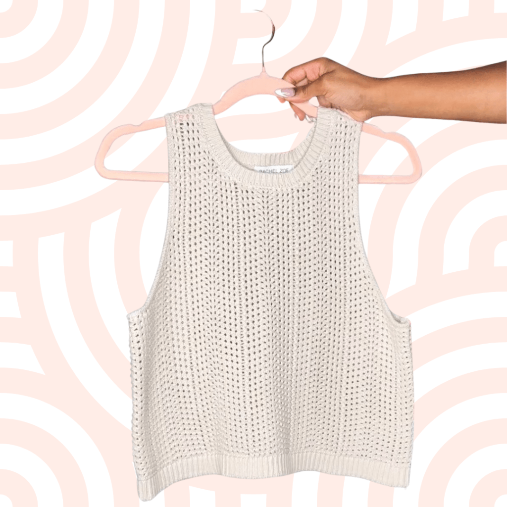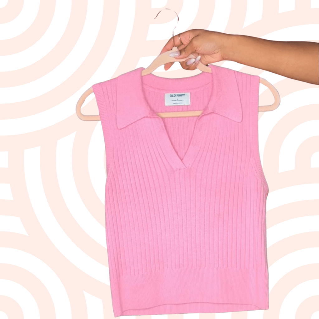 • Cobalt blue sleeveless V-neck ribbed knit top