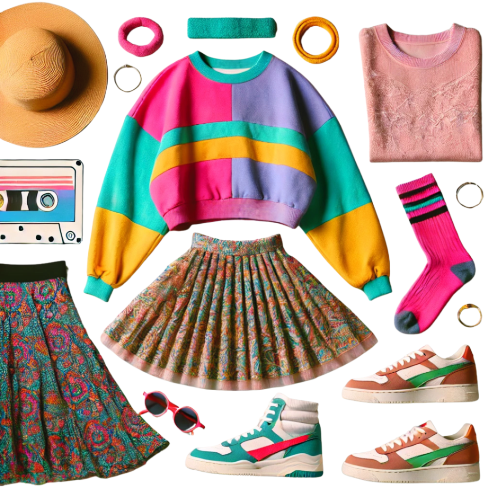 • Look for statement graphic tees, high-waisted jeans, and colorful prints.