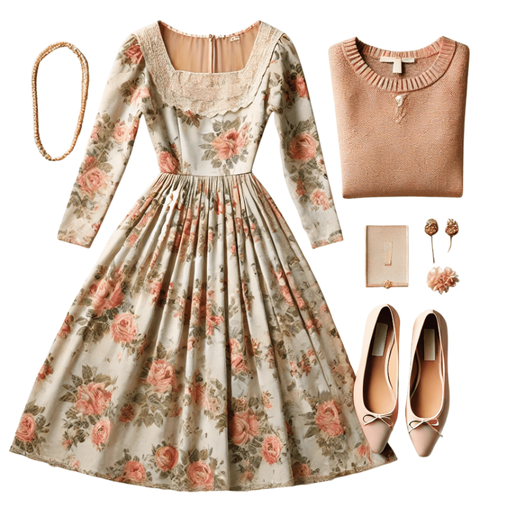 • Look for a pastel or floral midi dress with ruffles or lace accents.