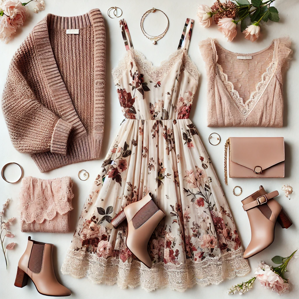 • Outfit Idea: Opt for a floral or lace midi dress in soft colors like blush, ivory, or burgundy. Layer with a cozy wrap or knit shawl, and pair with heeled ankle boots or ballet flats. Add dainty jewelry, like pearl earrings, to complete the look.
