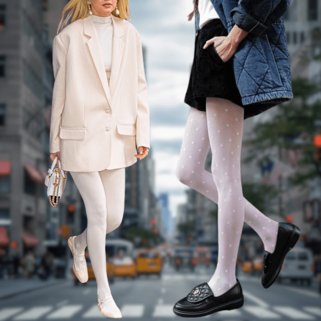 White tights are making waves as a standout accessory this season. Pair them with preppy mini skirts or whimsical dresses to add a fresh, retro-inspired touch to your winter looks.
