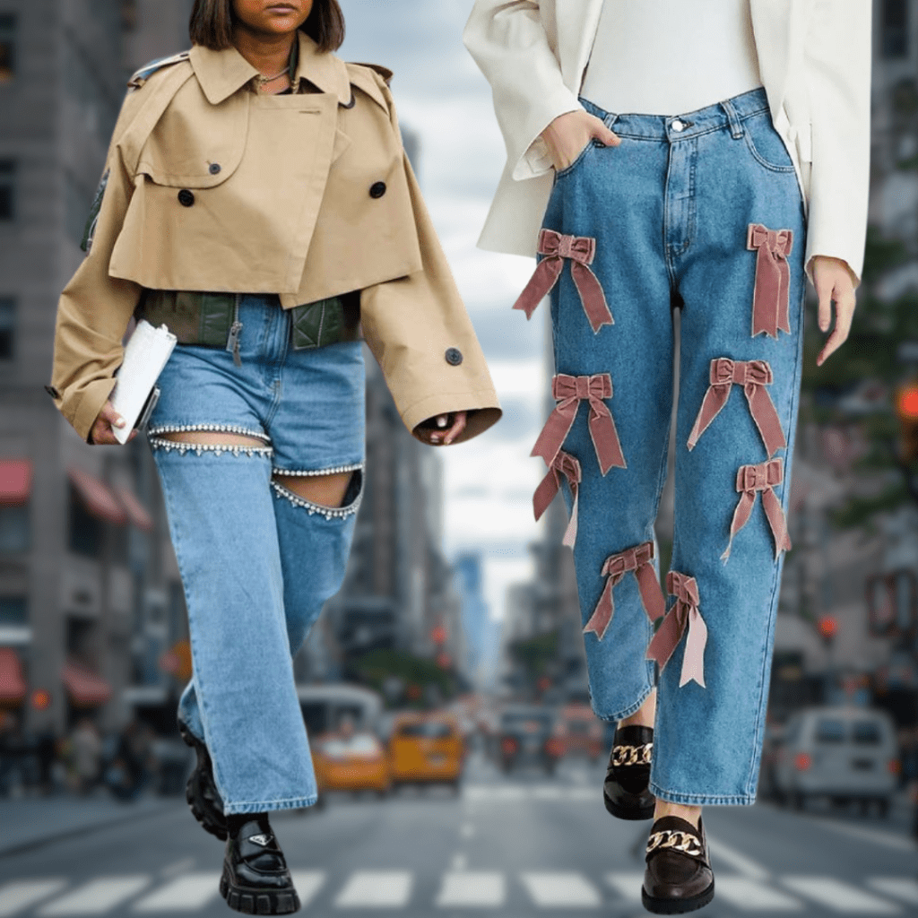 Denim takes a creative turn with eye-catching details like patchwork, embroidery, and unique silhouettes. These elevated pieces make a statement while remaining versatile wardrobe essentials.