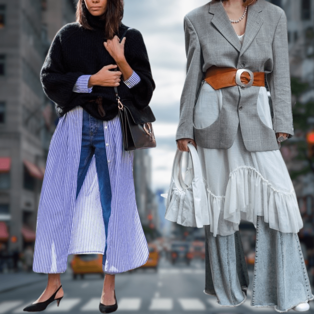 Layering takes on new life with the dress-over-pants trend. Combine flowing midi dresses with tailored trousers for a look that’s equal parts cozy and fashion-forward.